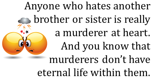 If we love our Christian brothers and sisters, it proves that we have passed from death to life. But a person who has no love is still dead. Anyone who hates another brother or sister is really a murderer at heart. And you know that murderers don’t have eternal life within them.
