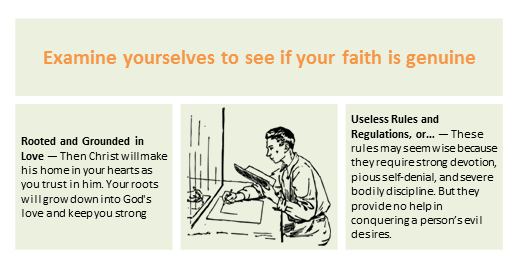 Examine yourselves to see if your faith is genuine. Test yourselves. Surely you know that Jesus Christ is among you; if not, you have failed the test of genuine faith. As you test yourselves, I hope you will recognize that we have not failed the test of apostolic authority. (2 Corinthians 13:5-6)