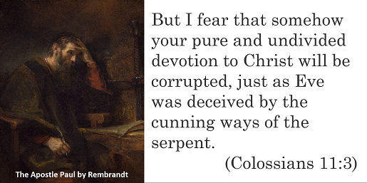 But I fear that somehow your pure and undivided devotion to Christ will be corrupted, just as Eve was deceived by the cunning ways of the serpent. (2 Corinthians 11:3)